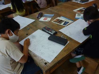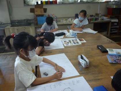 4年生は図工の時間に、ごみポスターを描いていました。毎年4年生が取り組んでいます。時々社会科の教科書も開き、学習したことを思い出しながら描いていました。「人を描くのが難しい〜」「○○ちゃんが描いたゴミ箱が上手だよ」などと、それぞれの思いや気付きを教えてくれました。