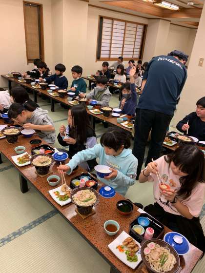お風呂に入ったら、ハイキングの疲れなど吹き飛んだのか、みんなよく食べています。安心です。