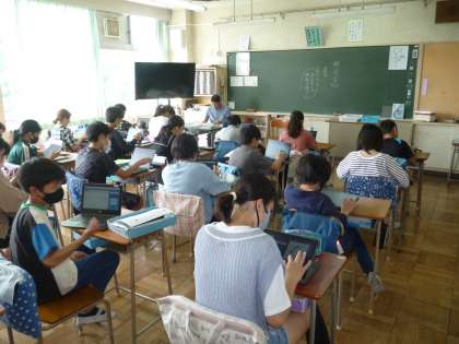 毎週水曜日の朝は、国語に関する学習に取り組んでいます。今日は漢字の小テストを行ったり、Chromebook使って学習アプリ『ミライシード』のコンテンツである漢字書き取りや言葉クイズにチャレンジしたりする学級が見られました。10分間という短い時間の中で集中して課題に取り組んでいる姿が、印象的でした。