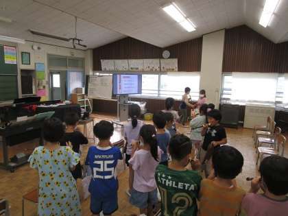 始めたばかりの時は息の調節が難しく、戸惑いもあったようですが、息の強さに気をつけながら周りの音をよく聴いて取り組んでいくうちに、安定した音が出せるようになってきました。「夕焼け小焼け」の冒頭部分を演奏できるようになる日も近いです。