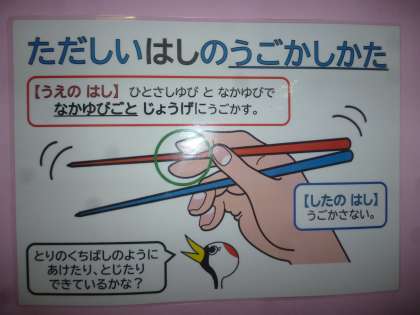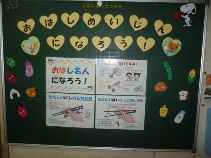 すでにおはしの使い方をチャレンジしているご家庭もあるかと思います。きれいに装飾された校内掲示物を載せますので、ご参考になさってください。