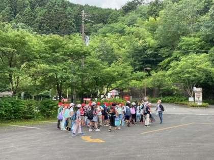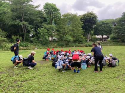 夕焼け小焼けの里に着きました。雨も降っておらず、予定通り芝生広場で昼食です。朝早くから、お弁当のご準備ありがとうございました。