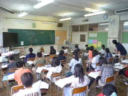 5時間目に、算数「小数でわる筆算」の学習が行われました。単元のまとめの時間となり、それぞれのクラスで復習問題に取り組んでいました。特に、あまりが出たとき、そのあまりのどこに小数点を打つのか?について確認があるなど、間違えやすい点については黒板を使って確認していました。