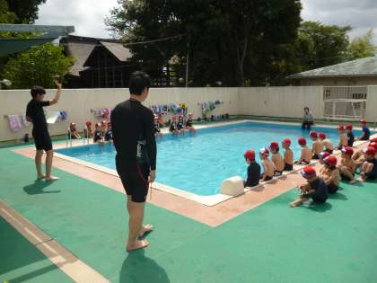 その後、いよいよ入水。プールに入る順番と笛の指示について丁寧な説明があり、1つ1つ確認しながらプール内での学習を進めることができました。今日は気温も高く、水泳学習が良いスタートを切れました。
