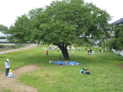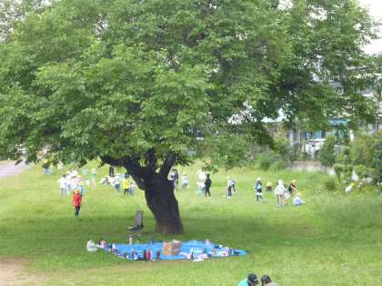 1・2時間目に、1−2と2−2がペアとなって、虫探しに出かけました。場所は桑の木広場、校庭のすぐ隣の湯殿川沿いの原っぱです。虫取り網と帽子を用意し、思い思いに虫を探し、追いかけている姿が印象的です。