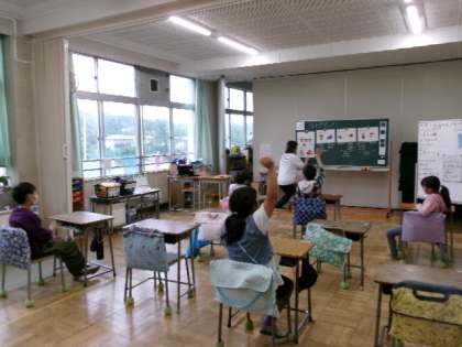 こころの日ということで、友達について考えました。カレーとミートソーススパゲティどちらが好き?や犬と猫どちらが好き?などの質問に答えて、自分と友達の考えは違うことがあることを知りました。だからこそ、友達のことをもっと知ることの大切さを学びました。