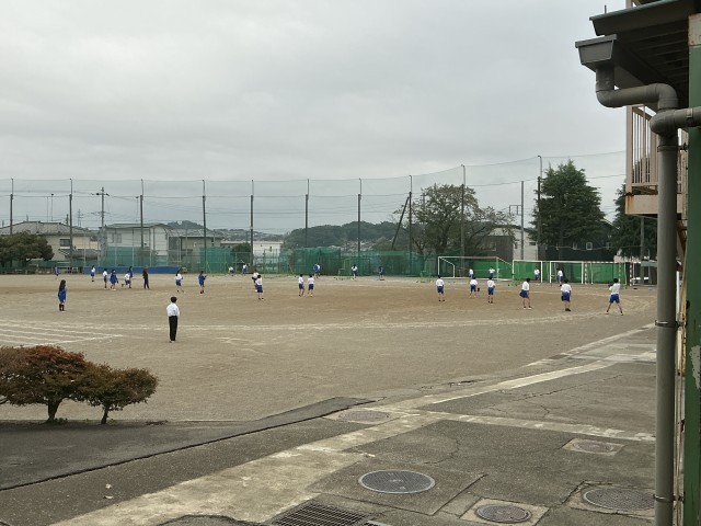 1年生の保健体育では、「ソフトボール」の実習に取り組み、バットでボールを打つ練習に励んでいます。