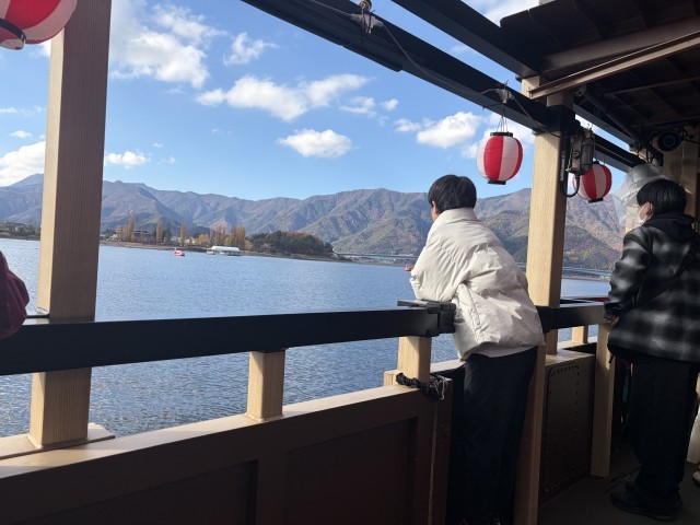 午後は富士五湖汽船に乗って河口湖を周遊し、湖上から望む壮大な富士山の姿に感動しました。