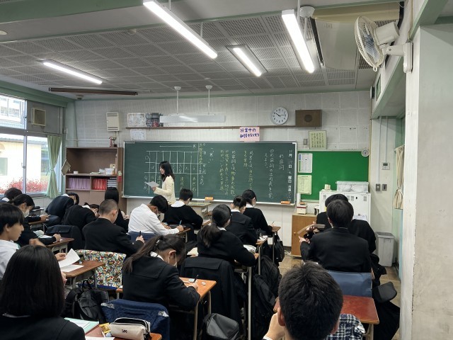 2年生の国語では、「形容詞」について学習しています。形容詞の活用表をワークシートに記入し、活用の仕方を確認しています。