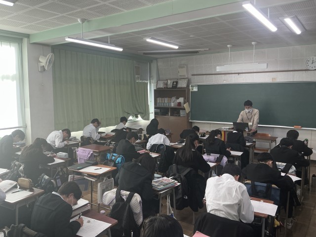2年生の保健体育では、バレーボールの活動に取り組んでおり、スパイクの練習を行なっています。