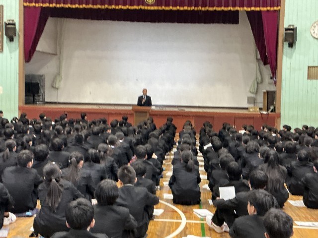 昨日、入学式が行われ、本日6校時に体育館に全校生徒が集まり、全校集会を実施しました。