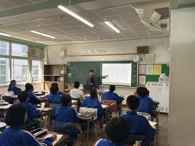 1年生の英語では、アルファベットの発音について、教員のあとに続いて発音しています。